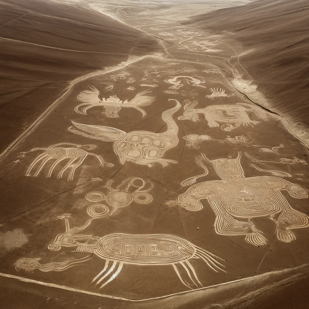 페루의 나스카 지상화는 거대한 그림들이 지상에 새겨져 있는 것으로, 하늘에서만 그 전체 모습을 볼 수 있습니다. 이 지상화의 목적과 제작 방법에 대해서는 여러 이론이 있지만, 정확한 이유는 여전히 미스터리입니다.